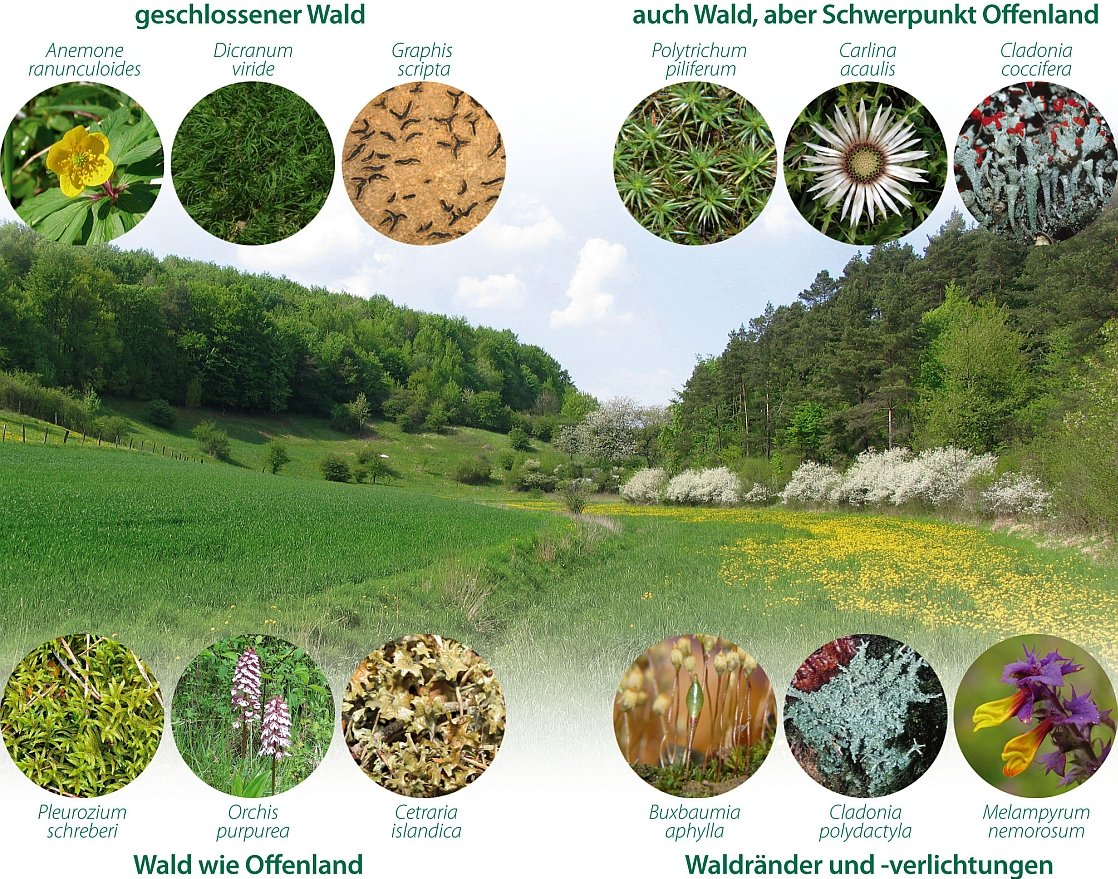 Farn- und Blütenpflanzen, Moose und Flechten haben erheblichen Anteil an der biologischen Vielfalt von Wäldern in Deutschland und werden seit langem als wichtige Indikatoren für aktuelle Standortbedingungen und Umweltveränderungen genutzt. Für die Bewertung der Artenvielfalt und Naturnähe von Waldökosystemen spielt die Frage, welche der in Deutschland vorkommenden Taxa als Waldarten eingestuft werden können, eine wesentliche Rolle. Im Rahmen einer breit angelegten E-Mail-Diskussion mit anschließenden Experten-Workshops wurden daher Waldartenlisten für Kryptogamen in Deutschland erarbeitet und die bereits bestehende Liste für Phanerogamen aktualisiert.