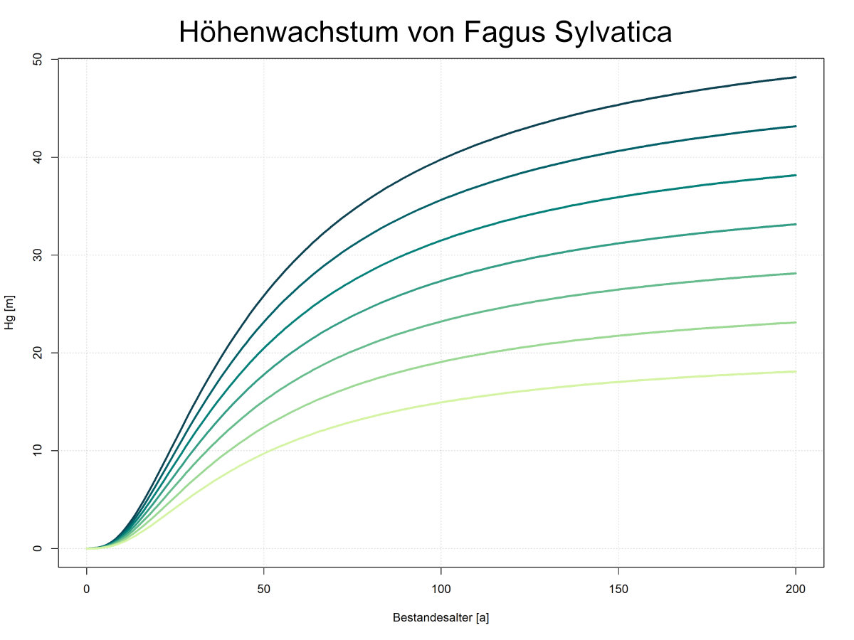 - Standorts- bzw. klimasensitive Modellierung des Waldwachstums