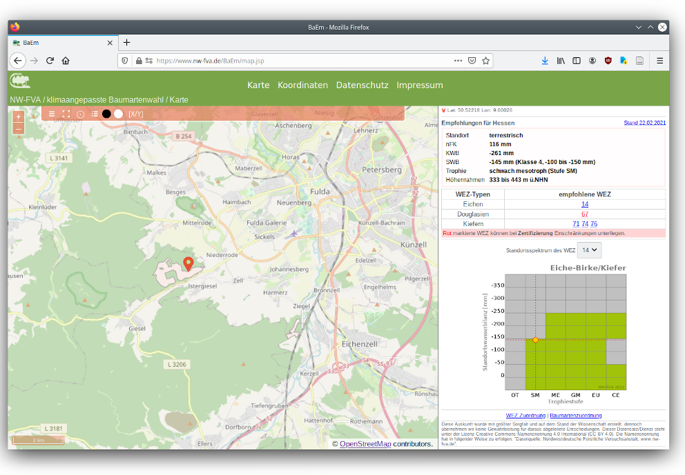 Das Portfolio der Unterstützung der Forstbetriebe durch die NW-FVA in betrieblichen Belangen reicht von einer analogen Waldschutzinfo, über Waldbaufibeln, Merkblätter und Pflegehinweise zu den einzelnen Baumarten bis hin zu Smartphone-Apps, Computer-Applikationen und Webservices mit Standortsinformationen und empfohlenen Waldentwicklungszielen sowie Herkunftsempfehlungen für anzupflanzende Baumarten.