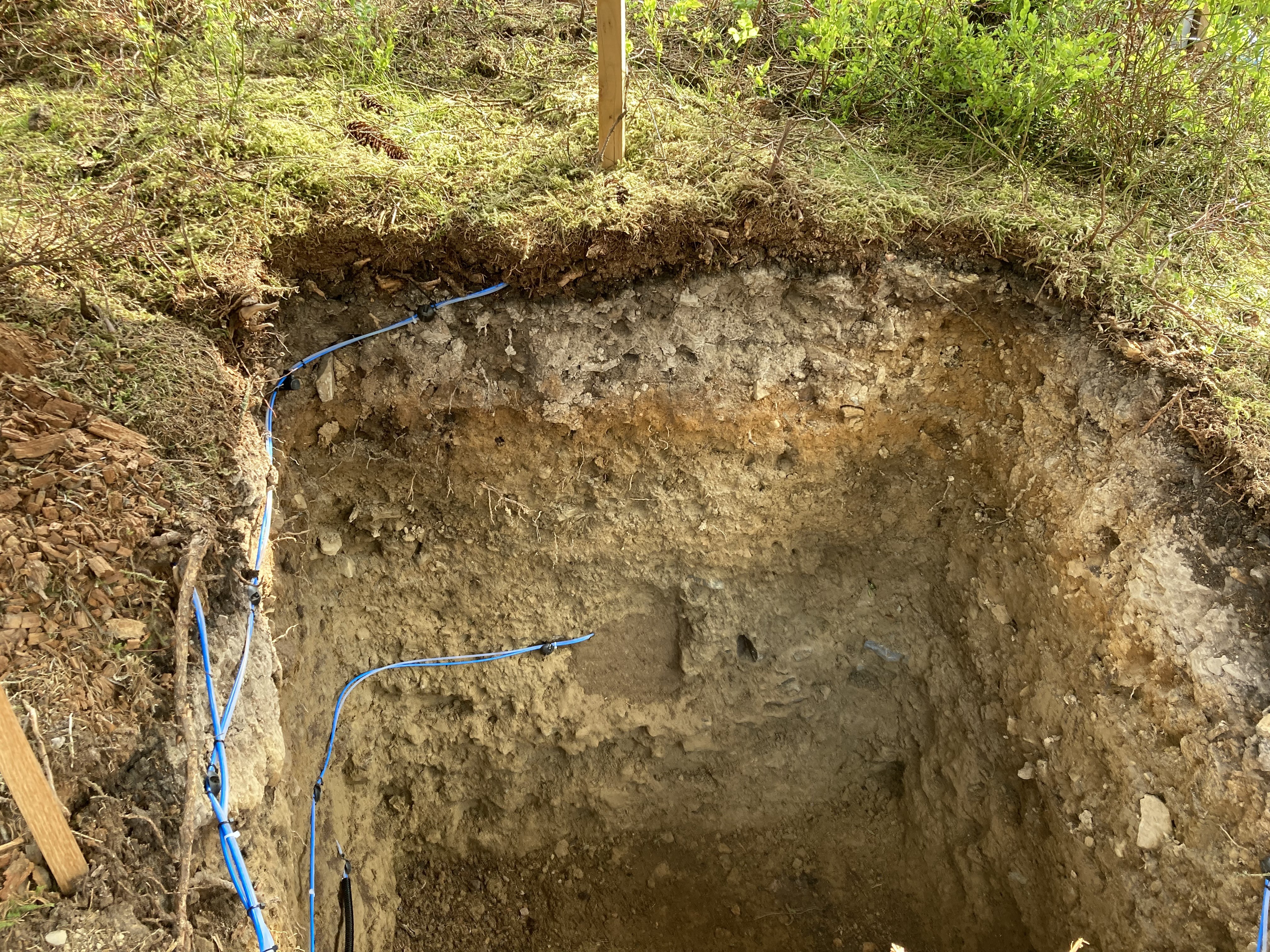 Bildunterschrift: Bodenprofil mit installierten Saugplatten zur kontinuierlichen Gewinnung von Sickerwasserproben auf Kalamitätsflächen. Durch sie kann die Sickerwasserqualität bei unterschiedlichen Managementintensitäten (z. B. Vergleich Räumung der Fläche, Dürrständer…) kontinuierlich überwacht und bewertet werden (Foto: Bernd Ahrends).