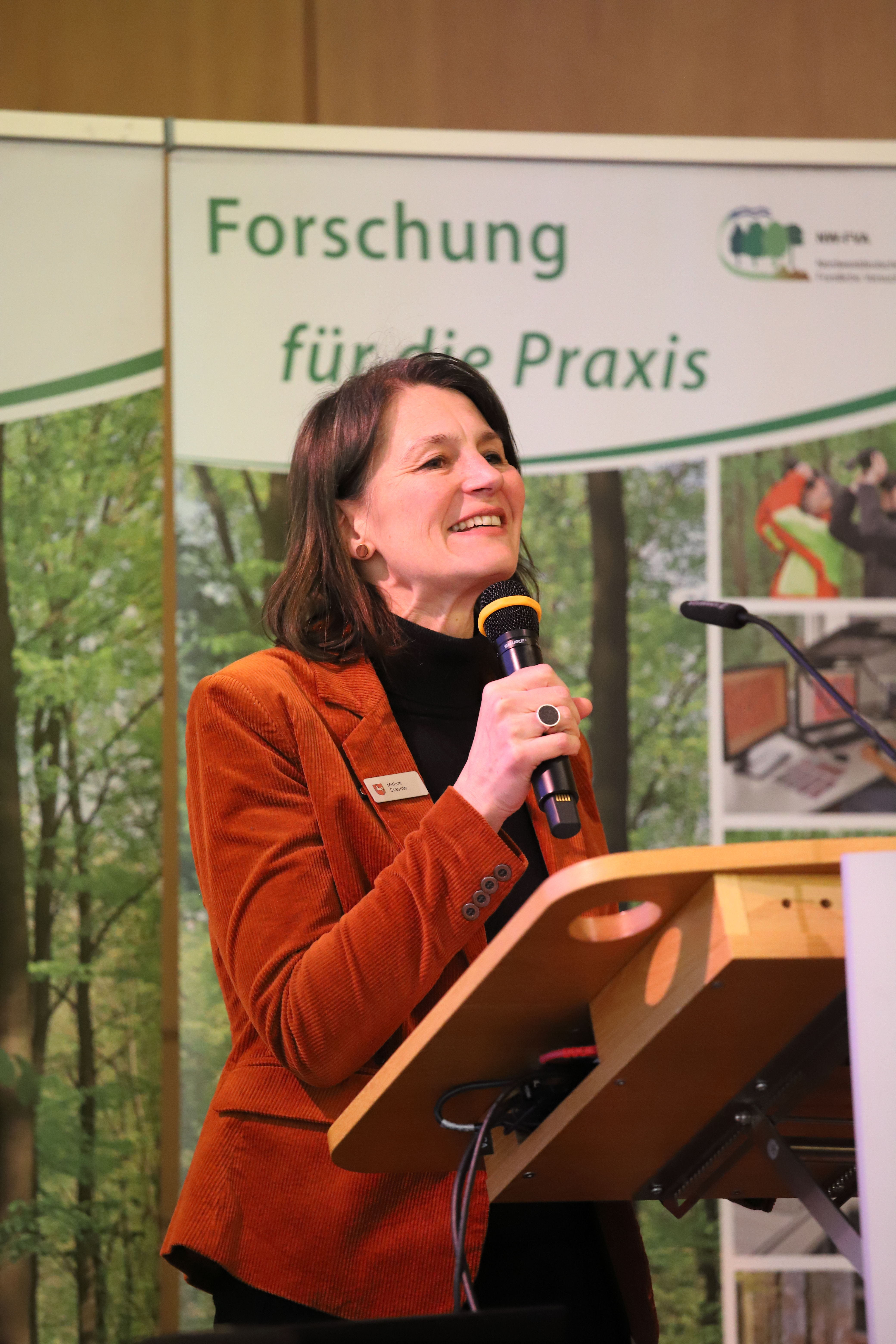 Niedersachsens Forstministerin Miriam Staudte eröffnet die Tagung mit einem Grußwort. (Foto: Jan Schick)