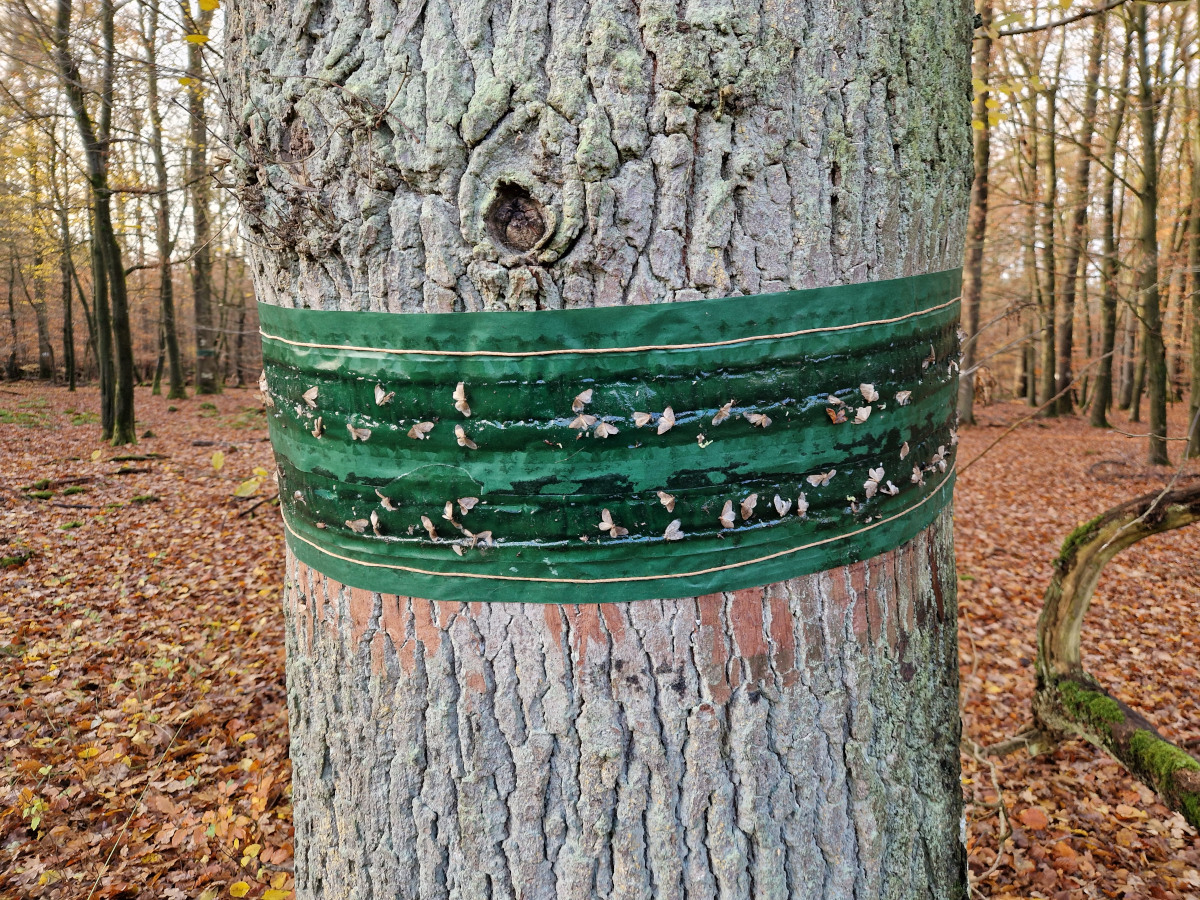 Die Überwachung der Populationsdichten des Kleinen und des Großen Frostspanners (Operophtera brumata L. und Erannis defoliaria CL.) erfolgte im Herbst 2025 in den Trägerländern der Nordwestdeutschen Forstlichen Versuchsanstalt mit Hilfe von Leimringen. Auf nahezu allen Überwachungsflächen befanden sich die Populationsdichten auf sehr niedrigem Niveau (Latenz). Lediglich auf zwei Flächen in Niedersachsen (Forstamt Rotenburg) wurde an wenigen Bäumen eine erhöhte Dichte festgestellt. Somit besteht für das Frühjahr keine erhöhte Gefährdung durch die Frostspannerarten. Da aber Eichenwickler und Eichenprozessionsspinner im Vorjahr lokal spürbaren Fraß verursacht hatten, sollten die Eichenbestände auch im kommenden Frühjahr hinsichtlich möglicher Fraßereignisse aufmerksam beobachtet und bei Bedarf Fraßbonituren durchgeführt werden.